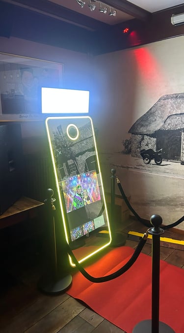 Een unieke beleving op elk feest. Met onze photobooth wordt ieder feest meteen een stuk leuker! Deze stijlvolle Photobooths zijn niet alleen een eyecatcher op je evenement, maar zorgt ook voor veel plezier bij je gasten. Door het grote spiegelende scherm kunnen gasten zichzelf zien terwijl ze een foto maken.