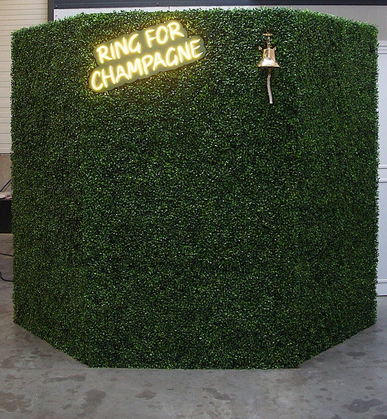 Onze Ring for champagne wand is een echte blikvanger op ieder feest. Deze stijlvolle groene wand met verlichting en bel zorgt voor een speels en luxe moment voor jouw gasten.
